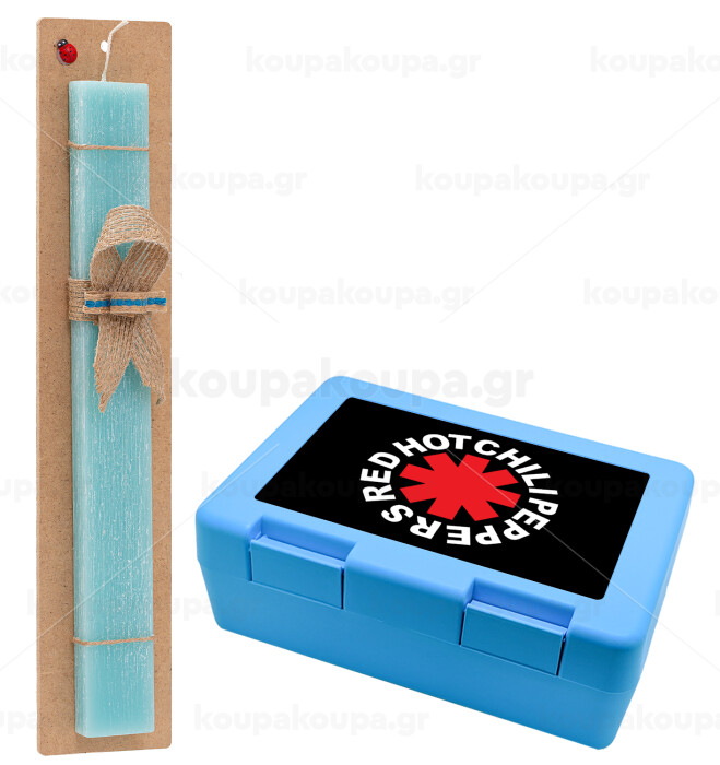 Red Hot Chili Peppers, Πασχαλινή Λαμπάδα με παιδικό δοχείο κολατσιού ΓΑΛΑΖΙΟ & κερί αρωματικό πλακέ (30cm) (ΤΙΡΚΟΥΑΖ)