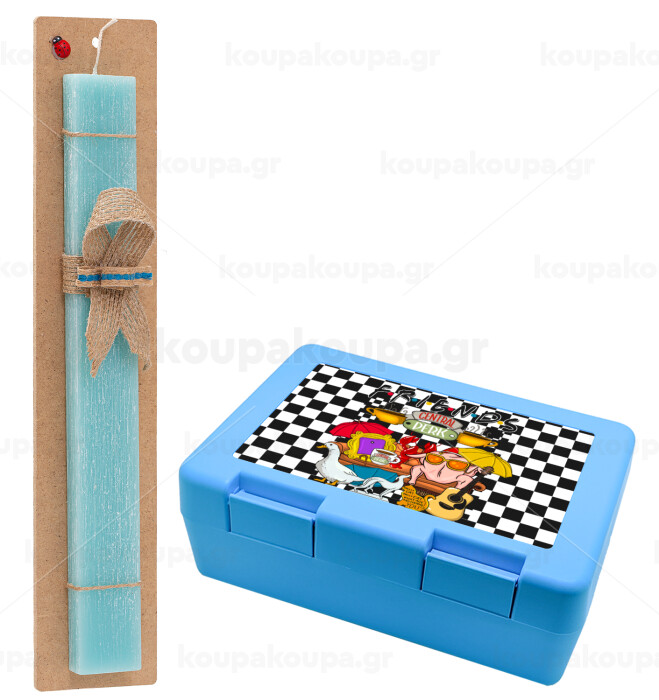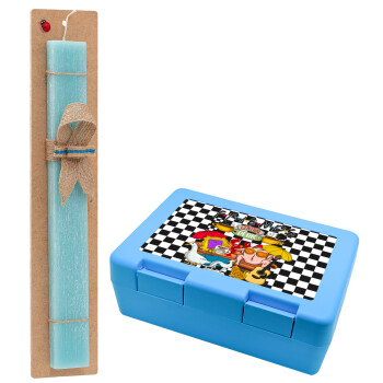 Τα φιλαράκια, Πασχαλινή Λαμπάδα με παιδικό δοχείο κολατσιού ΓΑΛΑΖΙΟ & κερί αρωματικό πλακέ (30cm) (ΤΙΡΚΟΥΑΖ)