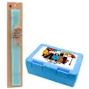 Friends cover, Πασχαλινή Λαμπάδα με παιδικό δοχείο κολατσιού ΓΑΛΑΖΙΟ & κερί αρωματικό πλακέ (30cm) (ΤΙΡΚΟΥΑΖ)