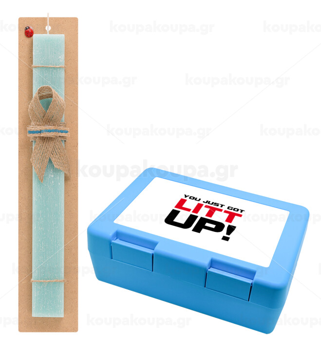 Suits You Just Got Litt Up! , Πασχαλινή Λαμπάδα με παιδικό δοχείο κολατσιού ΓΑΛΑΖΙΟ & κερί αρωματικό πλακέ (30cm) (ΤΙΡΚΟΥΑΖ)