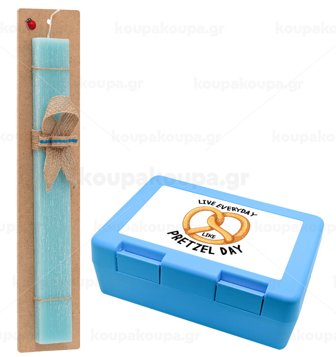 The office, Live every day like pretzel day, Πασχαλινή Λαμπάδα με παιδικό δοχείο κολατσιού ΓΑΛΑΖΙΟ & κερί αρωματικό πλακέ (30cm) (ΤΙΡΚΟΥΑΖ)
