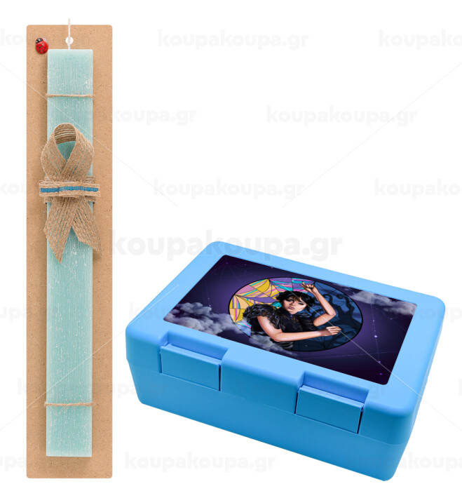 Wednesday dance, Πασχαλινή Λαμπάδα με παιδικό δοχείο κολατσιού ΓΑΛΑΖΙΟ & κερί αρωματικό πλακέ (30cm) (ΤΙΡΚΟΥΑΖ)