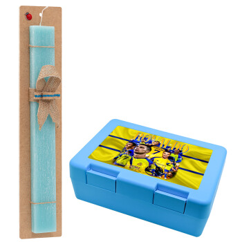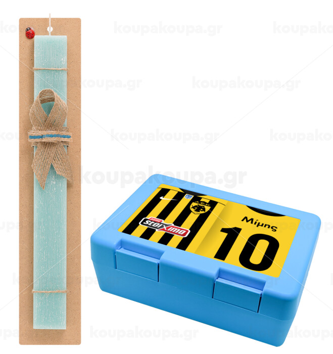 ΑΕΚ εμφάνιση, Πασχαλινή Λαμπάδα με παιδικό δοχείο κολατσιού ΓΑΛΑΖΙΟ & κερί αρωματικό πλακέ (30cm) (ΤΙΡΚΟΥΑΖ)