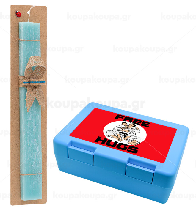 JUDO free hugs, Πασχαλινή Λαμπάδα με παιδικό δοχείο κολατσιού ΓΑΛΑΖΙΟ & κερί αρωματικό πλακέ (30cm) (ΤΙΡΚΟΥΑΖ)