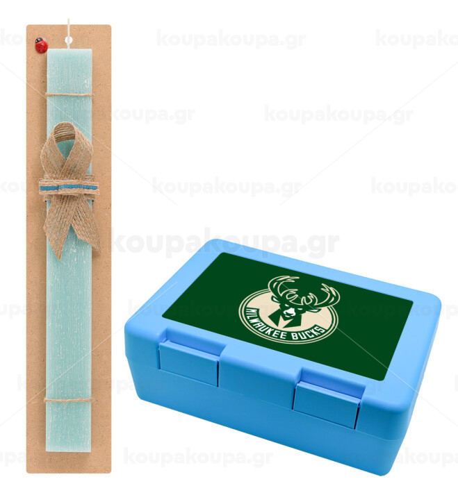 Milwaukee bucks, Πασχαλινή Λαμπάδα με παιδικό δοχείο κολατσιού ΓΑΛΑΖΙΟ & κερί αρωματικό πλακέ (30cm) (ΤΙΡΚΟΥΑΖ)