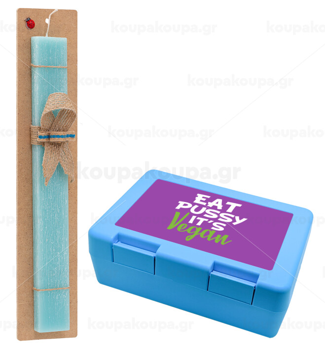 EAT pussy it's vegan, Πασχαλινή Λαμπάδα με παιδικό δοχείο κολατσιού ΓΑΛΑΖΙΟ & κερί αρωματικό πλακέ (30cm) (ΤΙΡΚΟΥΑΖ)