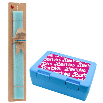 Barbie, Πασχαλινή Λαμπάδα με παιδικό δοχείο κολατσιού ΓΑΛΑΖΙΟ & κερί αρωματικό πλακέ (30cm) (ΤΙΡΚΟΥΑΖ)