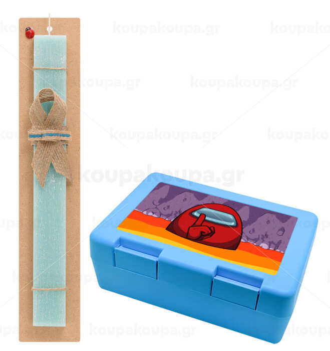 Among US, Πασχαλινή Λαμπάδα με παιδικό δοχείο κολατσιού ΓΑΛΑΖΙΟ & κερί αρωματικό πλακέ (30cm) (ΤΙΡΚΟΥΑΖ)