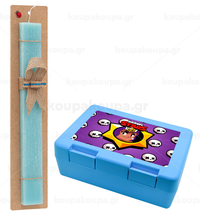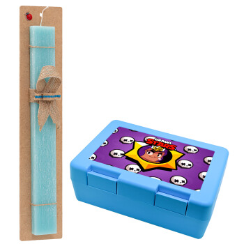 Brawl Stars Shelly, Πασχαλινή Λαμπάδα με παιδικό δοχείο κολατσιού ΓΑΛΑΖΙΟ & κερί αρωματικό πλακέ (30cm) (ΤΙΡΚΟΥΑΖ)
