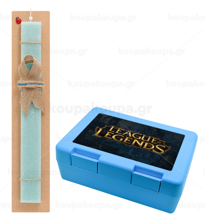 League of Legends LoL, Πασχαλινή Λαμπάδα με παιδικό δοχείο κολατσιού ΓΑΛΑΖΙΟ & κερί αρωματικό πλακέ (30cm) (ΤΙΡΚΟΥΑΖ)