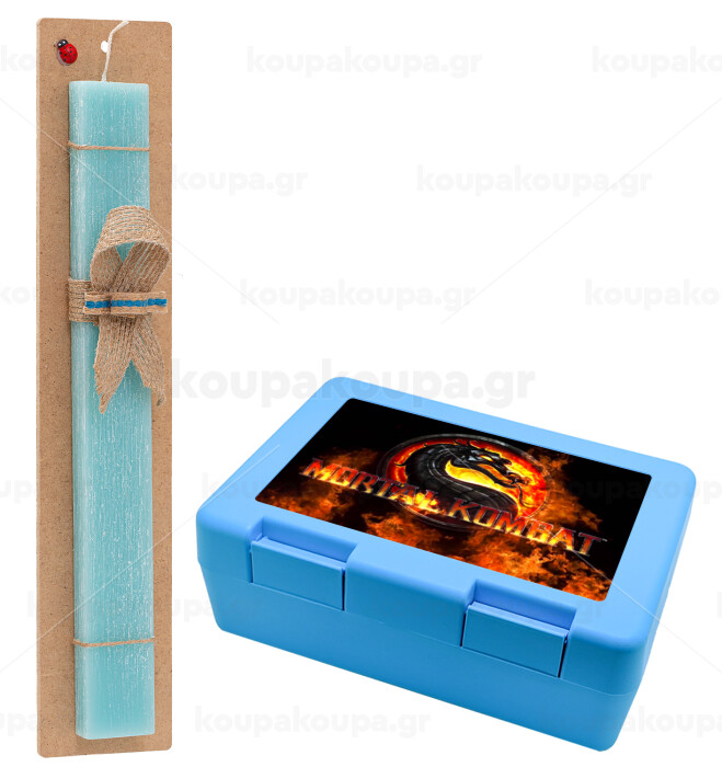 Mortal Kombat, Πασχαλινή Λαμπάδα με παιδικό δοχείο κολατσιού ΓΑΛΑΖΙΟ & κερί αρωματικό πλακέ (30cm) (ΤΙΡΚΟΥΑΖ)