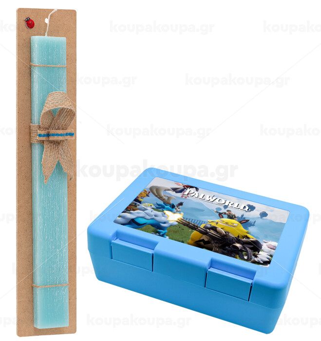 Palworld, Πασχαλινή Λαμπάδα με παιδικό δοχείο κολατσιού ΓΑΛΑΖΙΟ & κερί αρωματικό πλακέ (30cm) (ΤΙΡΚΟΥΑΖ)