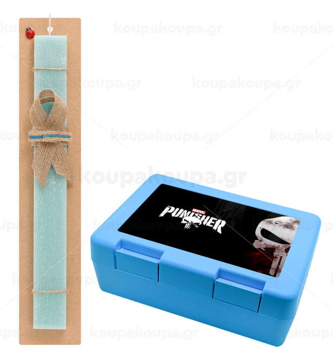 The punisher, Πασχαλινή Λαμπάδα με παιδικό δοχείο κολατσιού ΓΑΛΑΖΙΟ & κερί αρωματικό πλακέ (30cm) (ΤΙΡΚΟΥΑΖ)