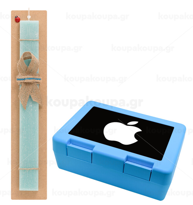 apple, Πασχαλινή Λαμπάδα με παιδικό δοχείο κολατσιού ΓΑΛΑΖΙΟ & κερί αρωματικό πλακέ (30cm) (ΤΙΡΚΟΥΑΖ)