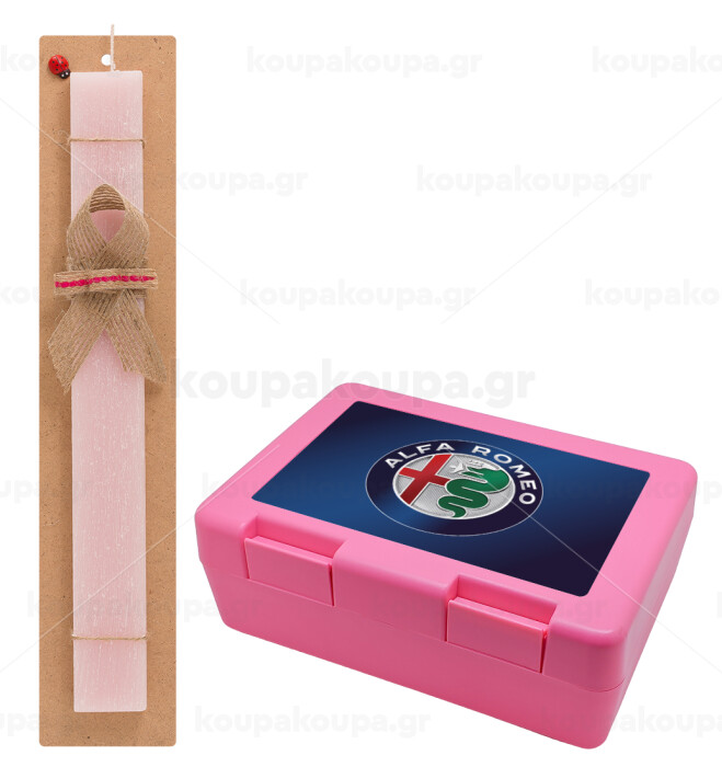 Alfa Romeo, Πασχαλινή Λαμπάδα με παιδικό δοχείο κολατσιού ΡΟΖ & κερί αρωματικό πλακέ (30cm) (ΡΟΖ)