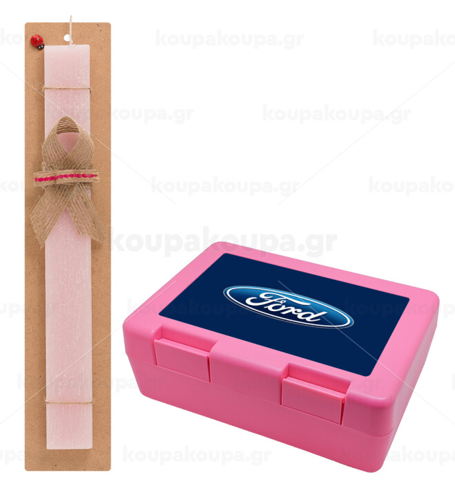 Ford, Πασχαλινή Λαμπάδα με παιδικό δοχείο κολατσιού ΡΟΖ & κερί αρωματικό πλακέ (30cm) (ΡΟΖ)