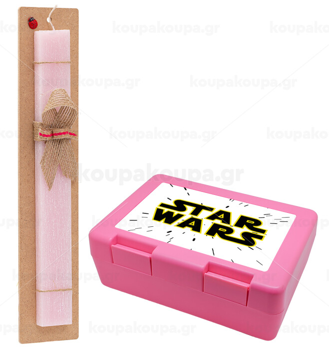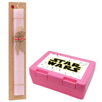 Star Wars, Πασχαλινή Λαμπάδα με παιδικό δοχείο κολατσιού ΡΟΖ & κερί αρωματικό πλακέ (30cm) (ΡΟΖ)