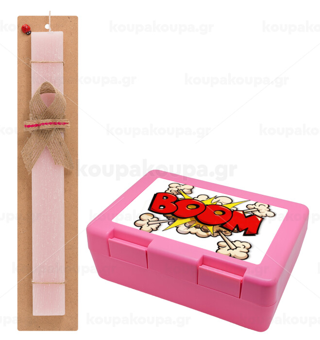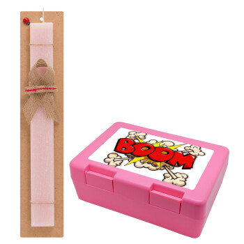 BOOM!!!, Πασχαλινή Λαμπάδα με παιδικό δοχείο κολατσιού ΡΟΖ & κερί αρωματικό πλακέ (30cm) (ΡΟΖ)