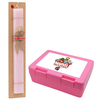 MARVEL, Πασχαλινή Λαμπάδα με παιδικό δοχείο κολατσιού ΡΟΖ & κερί αρωματικό πλακέ (30cm) (ΡΟΖ)