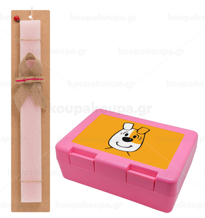 reksio bolek i lolek, Πασχαλινή Λαμπάδα με παιδικό δοχείο κολατσιού ΡΟΖ & κερί αρωματικό πλακέ (30cm) (ΡΟΖ)