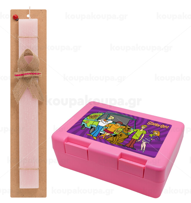 Scooby Doo car, Πασχαλινή Λαμπάδα με παιδικό δοχείο κολατσιού ΡΟΖ & κερί αρωματικό πλακέ (30cm) (ΡΟΖ)