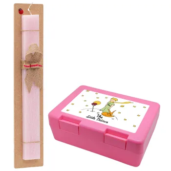 Ο μικρός πρίγκιπας classic, Πασχαλινή Λαμπάδα με παιδικό δοχείο κολατσιού ΡΟΖ & κερί αρωματικό πλακέ (30cm) (ΡΟΖ)