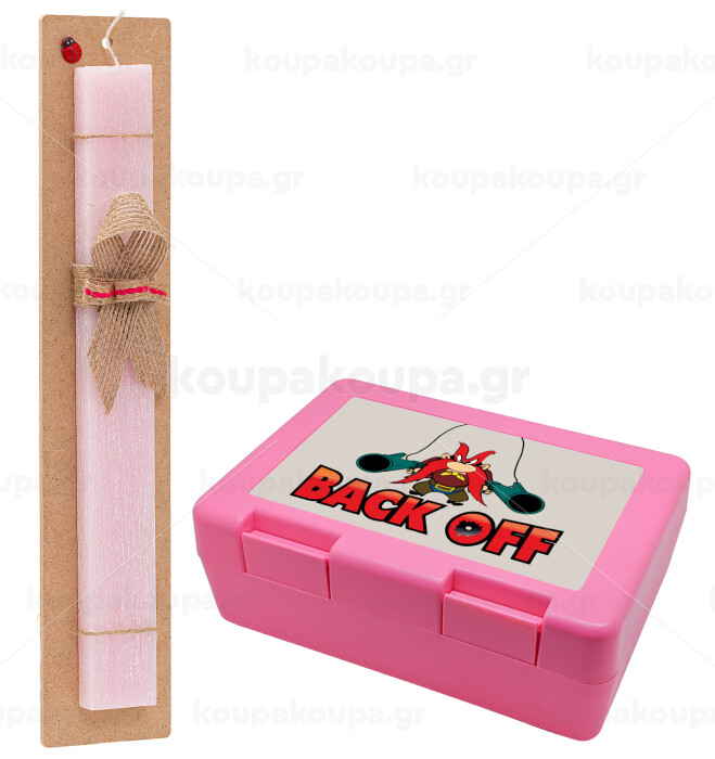 Yosemite Sam Back OFF, Πασχαλινή Λαμπάδα με παιδικό δοχείο κολατσιού ΡΟΖ & κερί αρωματικό πλακέ (30cm) (ΡΟΖ)