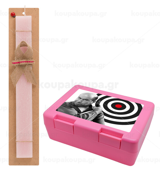 Θου Βου Φαλακρός Πράκτωρ, Πασχαλινή Λαμπάδα με παιδικό δοχείο κολατσιού ΡΟΖ & κερί αρωματικό πλακέ (30cm) (ΡΟΖ)