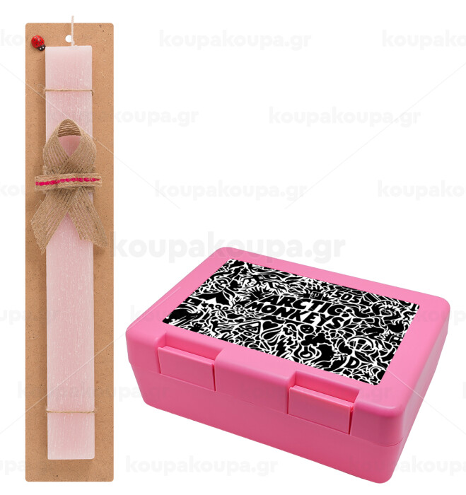 Arctic Monkeys, Πασχαλινή Λαμπάδα με παιδικό δοχείο κολατσιού ΡΟΖ & κερί αρωματικό πλακέ (30cm) (ΡΟΖ)