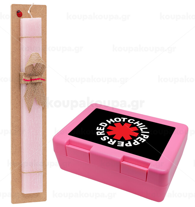Red Hot Chili Peppers, Πασχαλινή Λαμπάδα με παιδικό δοχείο κολατσιού ΡΟΖ & κερί αρωματικό πλακέ (30cm) (ΡΟΖ)