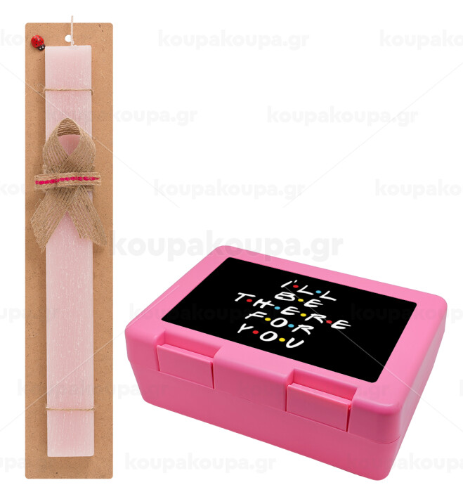 Friends i i'll be there for you, Πασχαλινή Λαμπάδα με παιδικό δοχείο κολατσιού ΡΟΖ & κερί αρωματικό πλακέ (30cm) (ΡΟΖ)