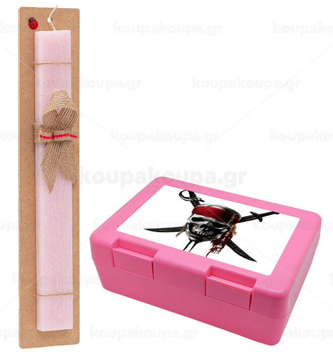 Pirates of the Caribbean, Πασχαλινή Λαμπάδα με παιδικό δοχείο κολατσιού ΡΟΖ & κερί αρωματικό πλακέ (30cm) (ΡΟΖ)