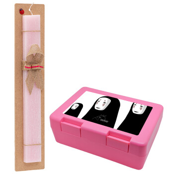 Spirited Away No Face, Πασχαλινή Λαμπάδα με παιδικό δοχείο κολατσιού ΡΟΖ & κερί αρωματικό πλακέ (30cm) (ΡΟΖ)