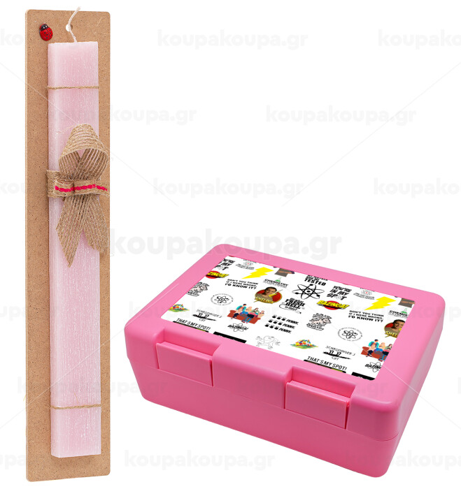 The Big Bang Theory pattern, Πασχαλινή Λαμπάδα με παιδικό δοχείο κολατσιού ΡΟΖ & κερί αρωματικό πλακέ (30cm) (ΡΟΖ)