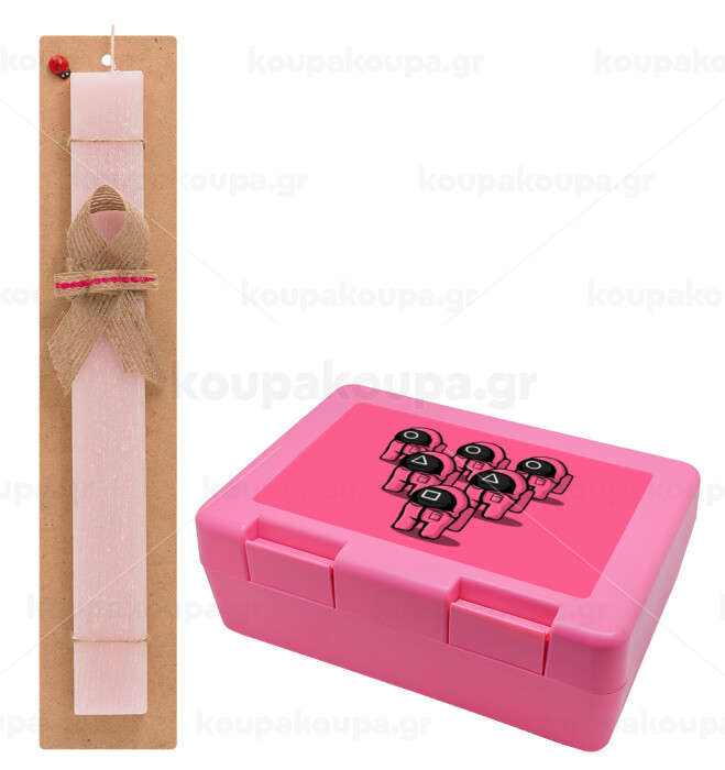 The squid game among us, Πασχαλινή Λαμπάδα με παιδικό δοχείο κολατσιού ΡΟΖ & κερί αρωματικό πλακέ (30cm) (ΡΟΖ)