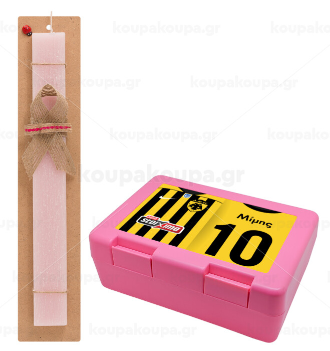 ΑΕΚ εμφάνιση, Πασχαλινή Λαμπάδα με παιδικό δοχείο κολατσιού ΡΟΖ & κερί αρωματικό πλακέ (30cm) (ΡΟΖ)