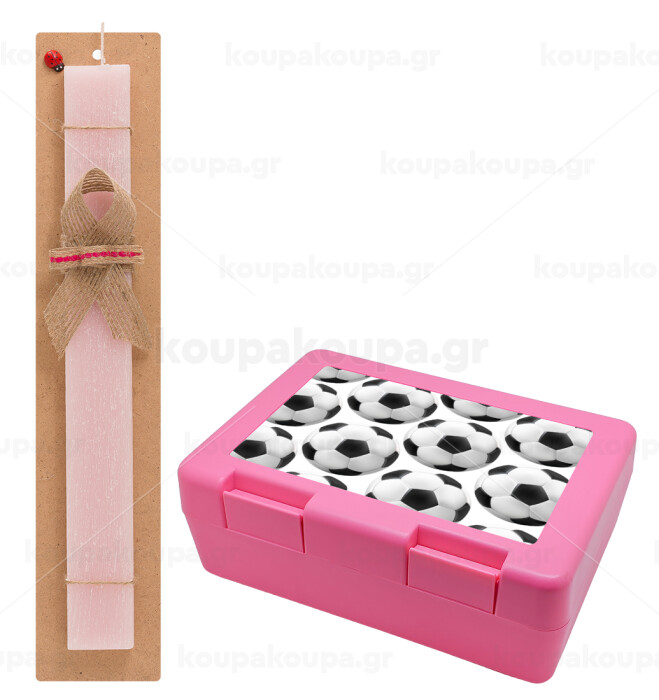 Μπάλα ποδοσφαίρου, Πασχαλινή Λαμπάδα με παιδικό δοχείο κολατσιού ΡΟΖ & κερί αρωματικό πλακέ (30cm) (ΡΟΖ)