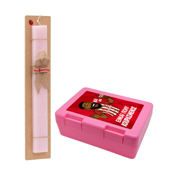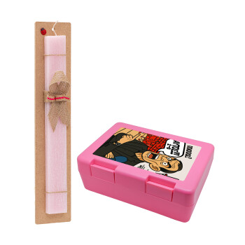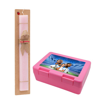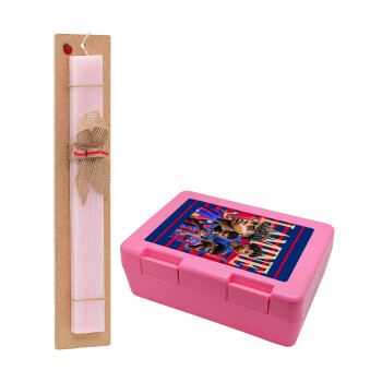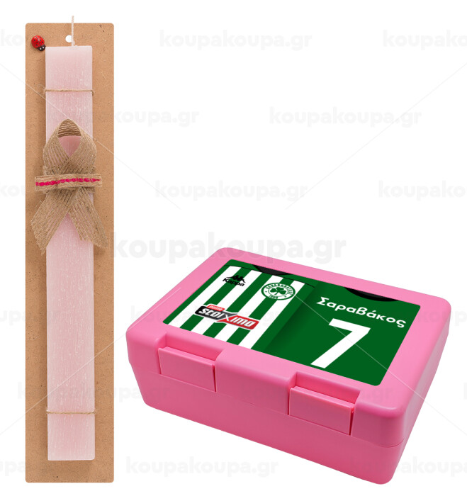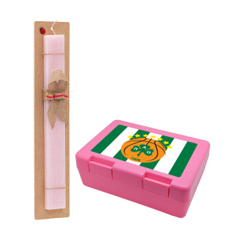 Παναθηναϊκός εμφάνιση, Πασχαλινή Λαμπάδα με παιδικό δοχείο κολατσιού ΡΟΖ & κερί αρωματικό πλακέ (30cm) (ΡΟΖ)