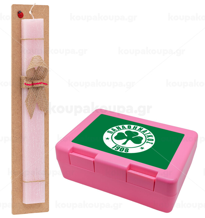 ΠΑΟ Παναθηναϊκός, Πασχαλινή Λαμπάδα με παιδικό δοχείο κολατσιού ΡΟΖ & κερί αρωματικό πλακέ (30cm) (ΡΟΖ)