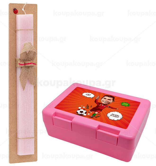 Cristiano Ronaldo, Πασχαλινή Λαμπάδα με παιδικό δοχείο κολατσιού ΡΟΖ & κερί αρωματικό πλακέ (30cm) (ΡΟΖ)