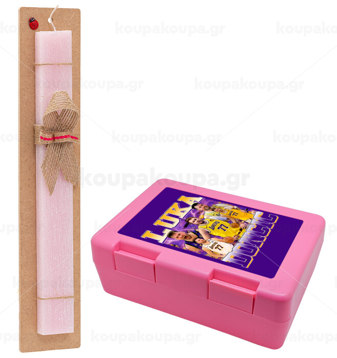 Luka Doncic Basketball , Πασχαλινή Λαμπάδα με παιδικό δοχείο κολατσιού ΡΟΖ & κερί αρωματικό πλακέ (30cm) (ΡΟΖ)
