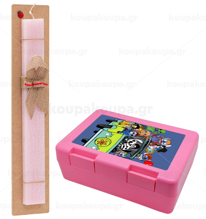 Stitch Basketball, Πασχαλινή Λαμπάδα με παιδικό δοχείο κολατσιού ΡΟΖ & κερί αρωματικό πλακέ (30cm) (ΡΟΖ)