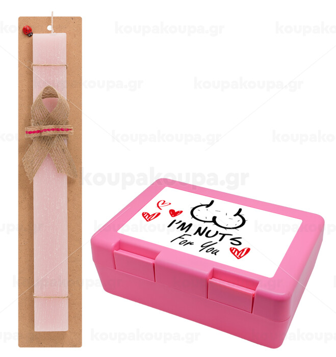 I'm Nuts for you, Πασχαλινή Λαμπάδα με παιδικό δοχείο κολατσιού ΡΟΖ & κερί αρωματικό πλακέ (30cm) (ΡΟΖ)