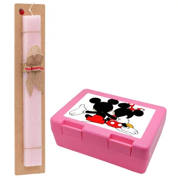 mickey and minnie hags, Πασχαλινή Λαμπάδα με παιδικό δοχείο κολατσιού ΡΟΖ & κερί αρωματικό πλακέ (30cm) (ΡΟΖ)