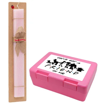 You've Got a Friend in Me, Πασχαλινή Λαμπάδα με παιδικό δοχείο κολατσιού ΡΟΖ & κερί αρωματικό πλακέ (30cm) (ΡΟΖ)