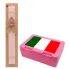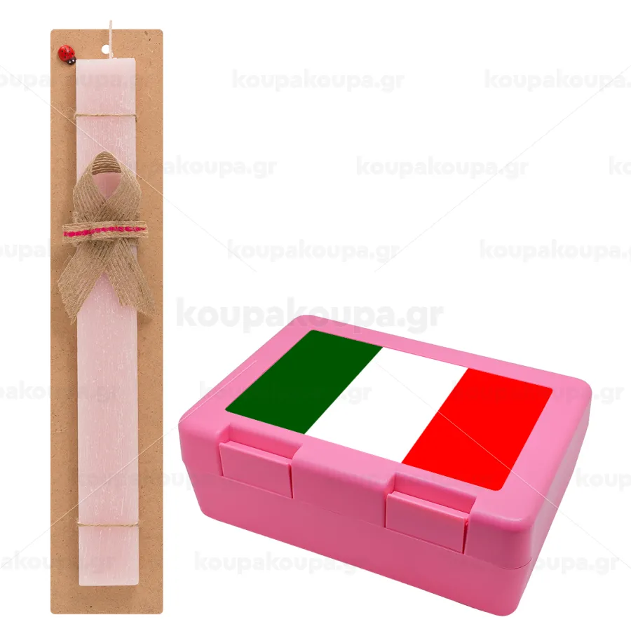 Italy flag, Πασχαλινή Λαμπάδα με παιδικό δοχείο κολατσιού ΡΟΖ & κερί αρωματικό πλακέ (30cm) (ΡΟΖ)
