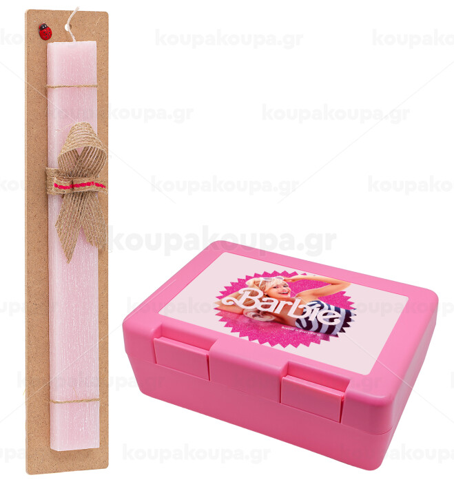 Barbie is everything, Πασχαλινή Λαμπάδα με παιδικό δοχείο κολατσιού ΡΟΖ & κερί αρωματικό πλακέ (30cm) (ΡΟΖ)