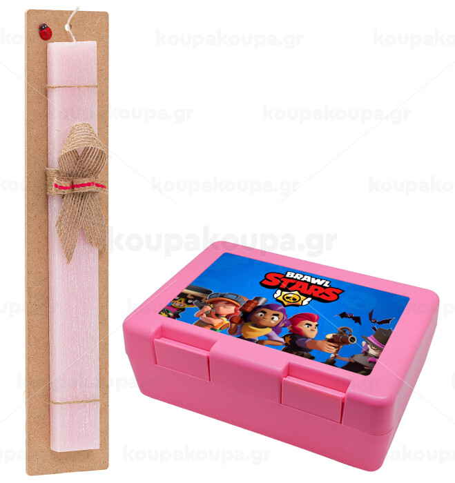 Brawl Stars Blue, Πασχαλινή Λαμπάδα με παιδικό δοχείο κολατσιού ΡΟΖ & κερί αρωματικό πλακέ (30cm) (ΡΟΖ)