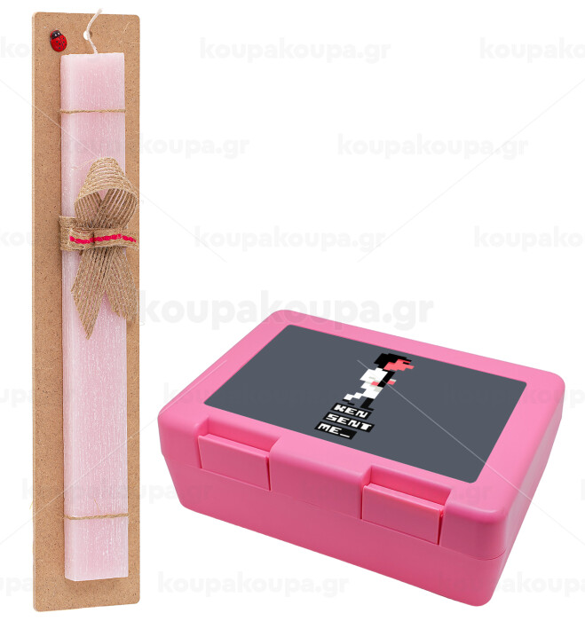 Ken sent me, Leisure Suit Larry, Πασχαλινή Λαμπάδα με παιδικό δοχείο κολατσιού ΡΟΖ & κερί αρωματικό πλακέ (30cm) (ΡΟΖ)