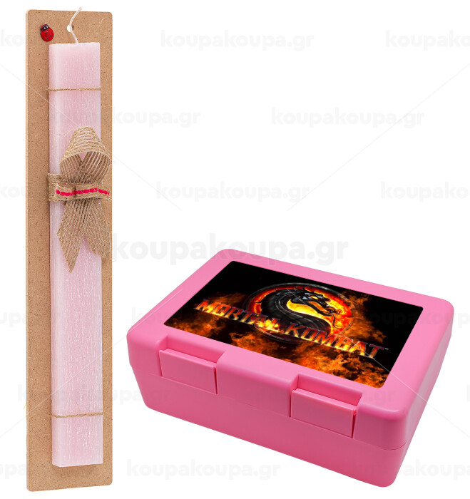 Mortal Kombat, Πασχαλινή Λαμπάδα με παιδικό δοχείο κολατσιού ΡΟΖ & κερί αρωματικό πλακέ (30cm) (ΡΟΖ)
